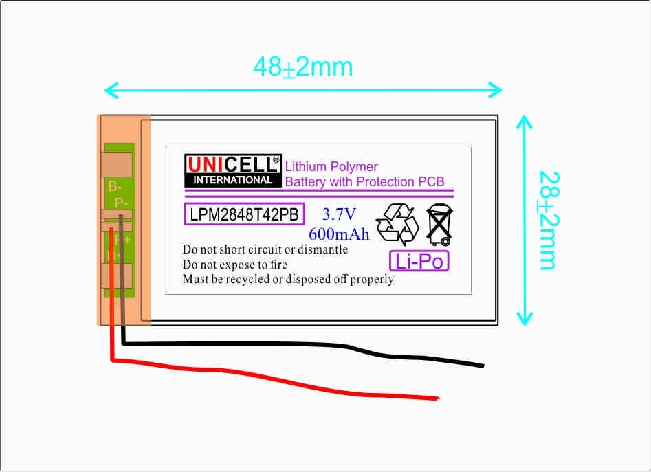 3.7V 600mAh 422848 Lithium polymer battery supply by UNICELL in Singapore